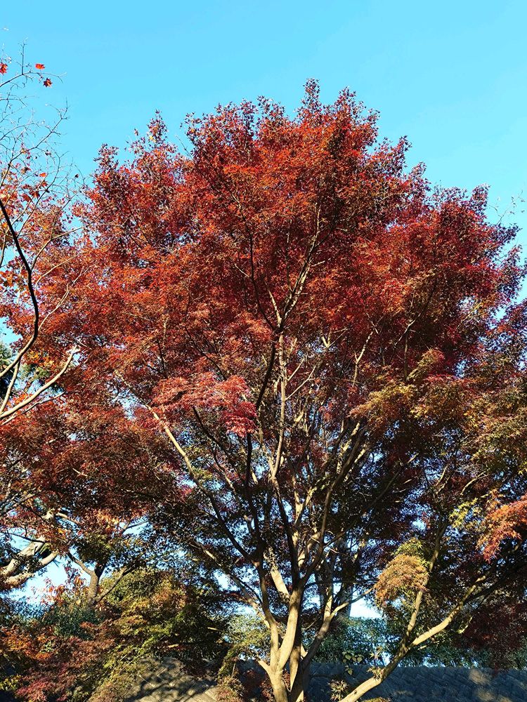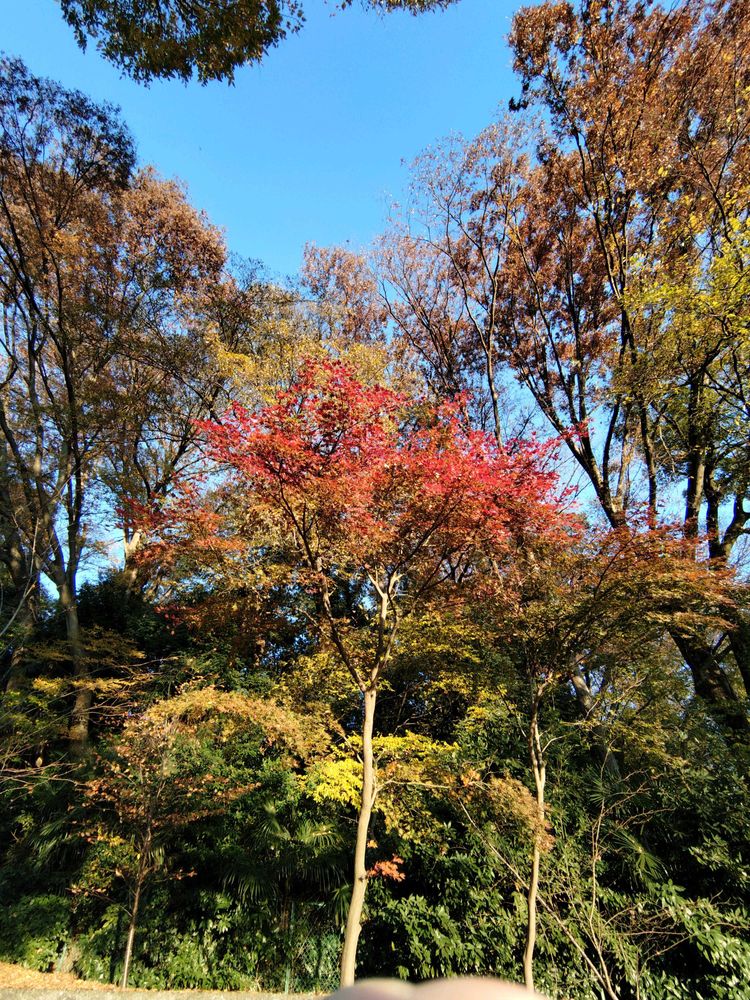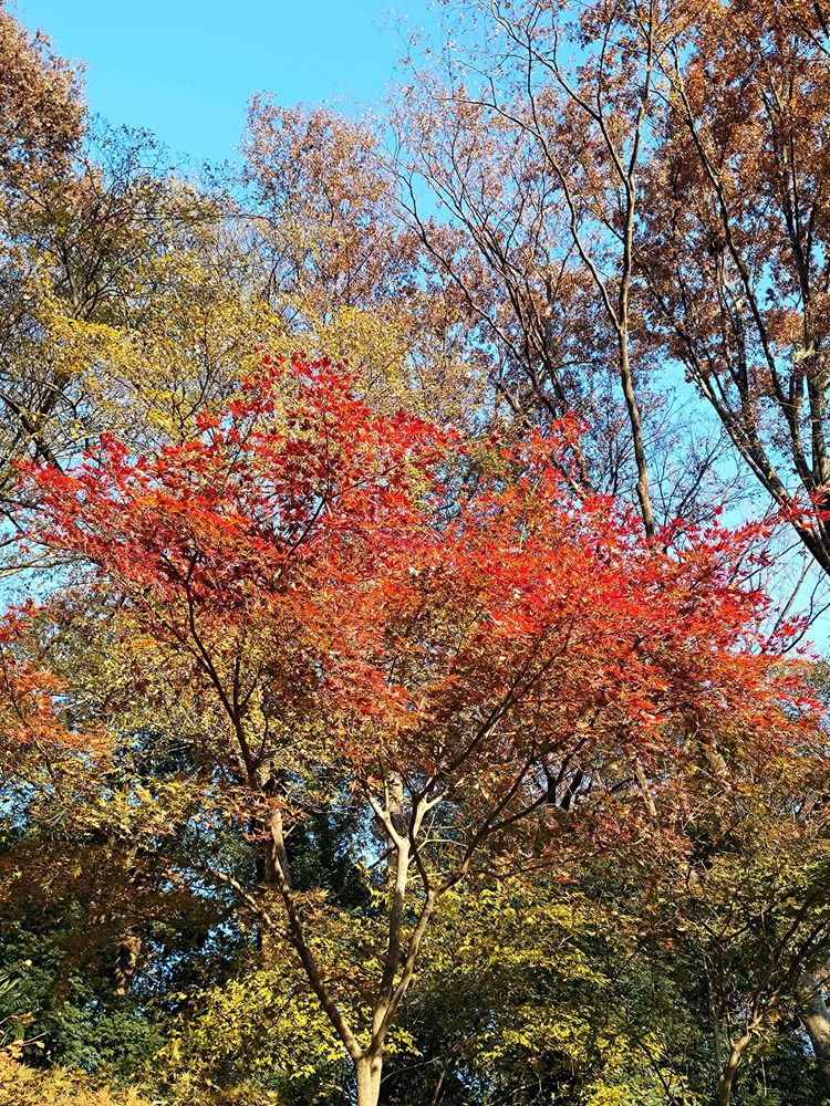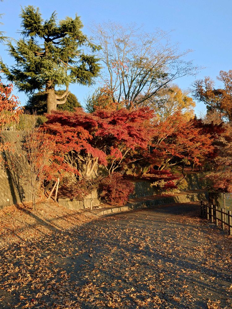 いつもの散歩コースは紅葉のピークを迎えたようです🍁🍁🍁 わたしの目も赤く染まって充血しそうです😍(農業試験場内にて)