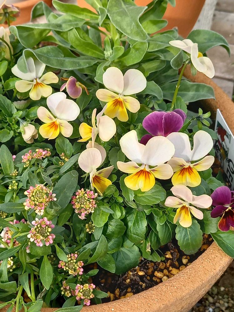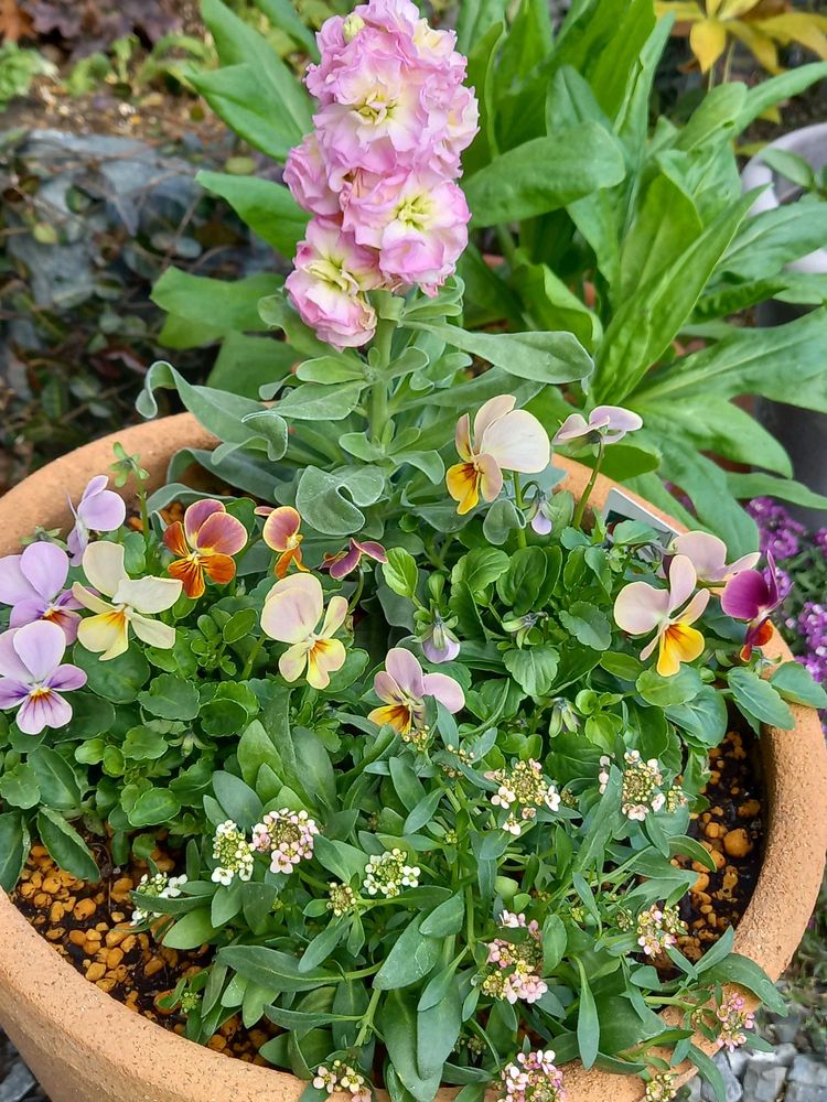 二つに分けて、ストックとアリッサムと寄せ植えです😊💕