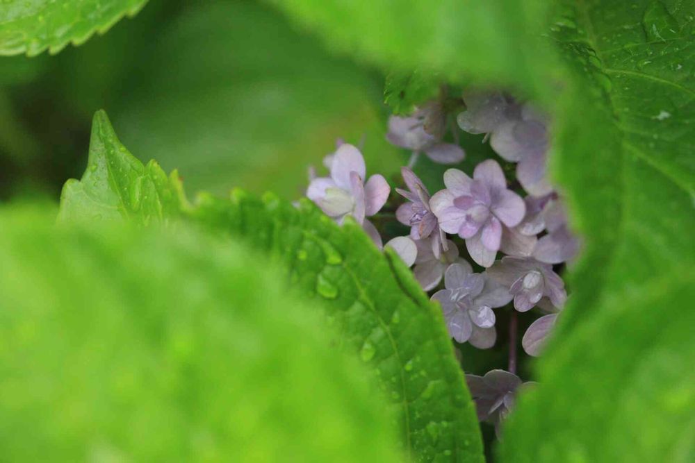 雨の紫陽花を撮ろうとカメラを構えたら奥の方からチラッと、葉っぱの傘をさした小さな花が顔を見せてくれました☔️可愛いですよね💕