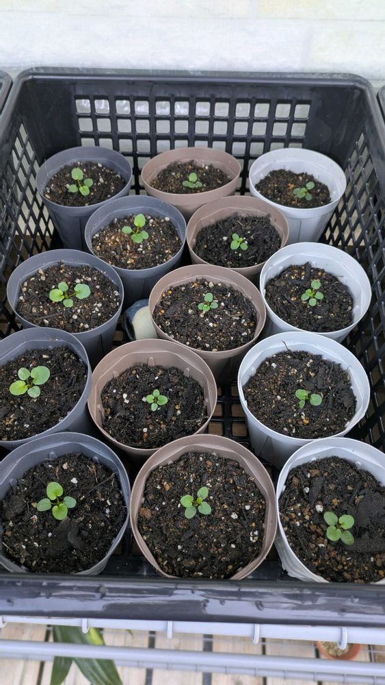 花壇は放置なので、ベランダの新芽の皆さんの写真を🌱