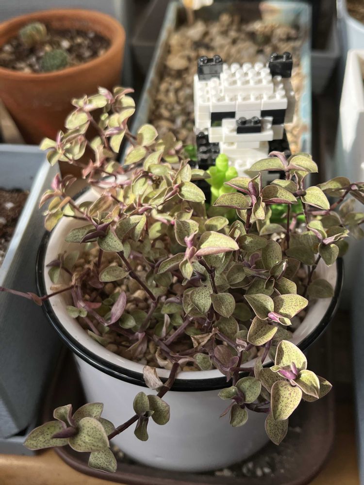 先日、お友達がオマケに付けてくれたカリシアさんを植えたら、4.5個桃色が混じってるみたいなの🤔
