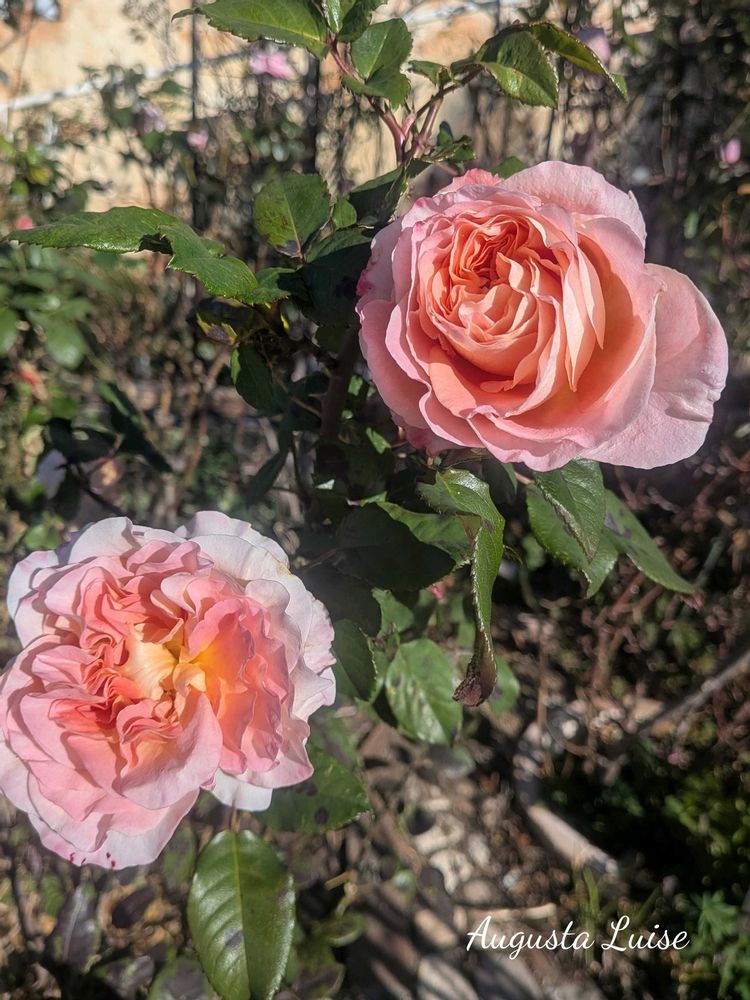 ②アウグスタルイーゼ🌹左の子はグチャグチャ咲きしてる😅寒くなると段々こんなの増えます😥