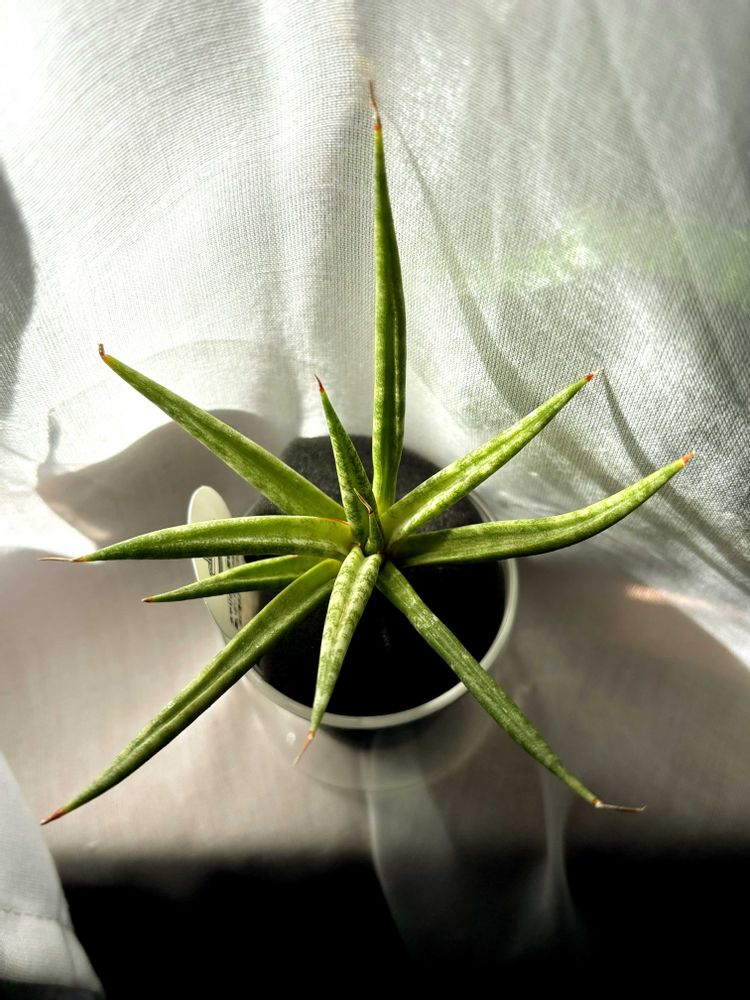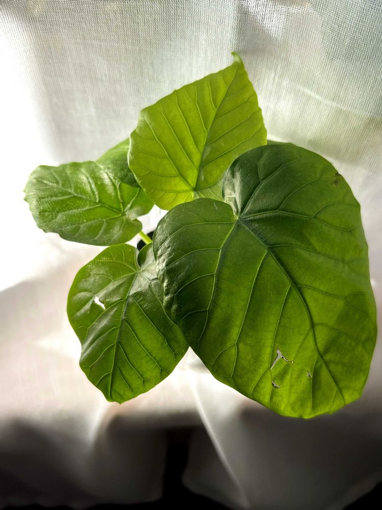 2025.8月に某サイトで購入した【アロカシア チャイ】の 突然変異?なんだろう 購入時、元々有った葉を(1枚目の葉)として、 下から新たな葉が出てきてる状態で到着しました(2枚目の葉) こちらに来て初めて出てきた葉に異変が。。 育て始めて出てきた初めての3枚目、4枚目 (途中から、斑1、斑2、、と続きます) どこまでこの謎の斑入葉が続くのか、 いや止まるのか……記録していきます