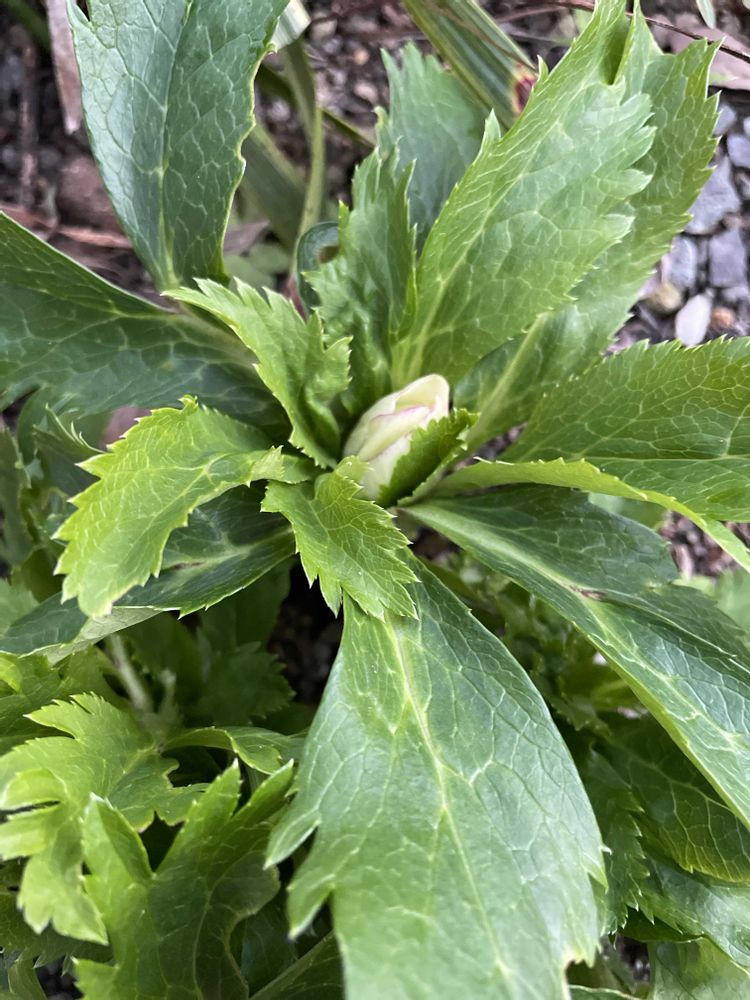 クリスマスローズ 一株だけわさわさ〜蕾が上がっています