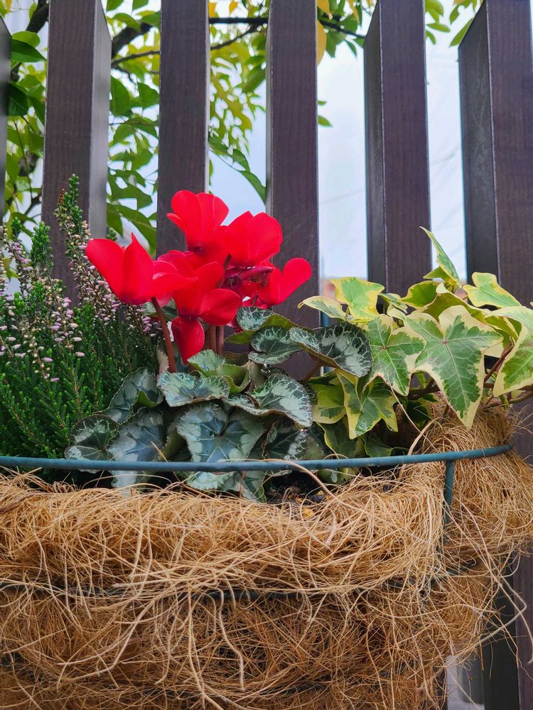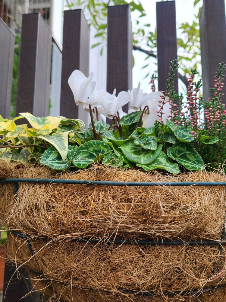 2️⃣3️⃣ハンギングにした赤色シクラメンと白色シクラメンの寄せ植え