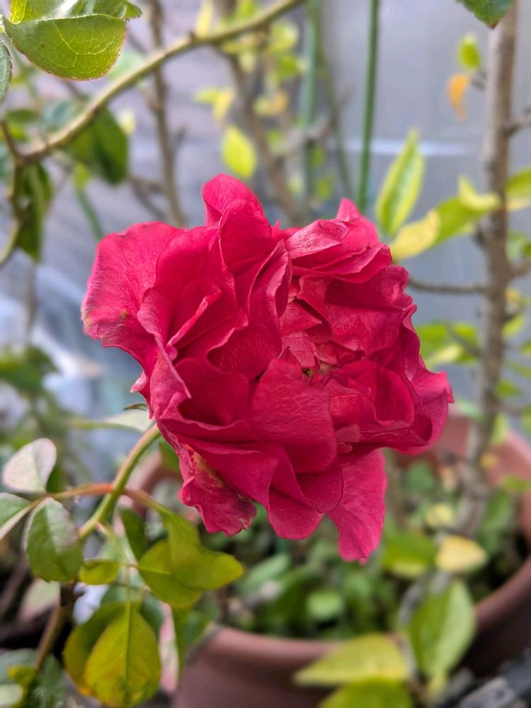 (お供えに頂いたミニバラを挿し木ベルちゃんローズと名付けた…9ヶ月目に初めて母の日に赤い🌹ミニバラが1輪咲いた‼️それ以来3年咲き続けているのよ✌️🥰