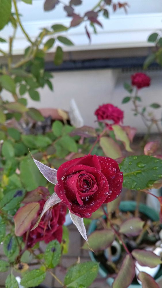 ①ミニバラ♥️昨夜の雨つゆで花びらが潤ってます