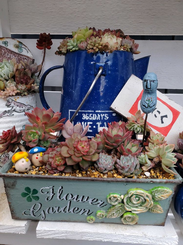 寄せ植えは、もちろん、鉢も素敵🥰ピータンたちも楽しそう‼️
