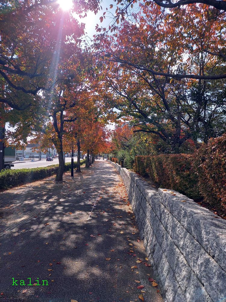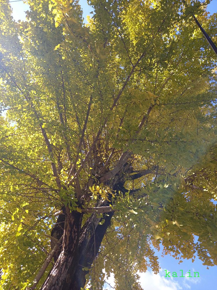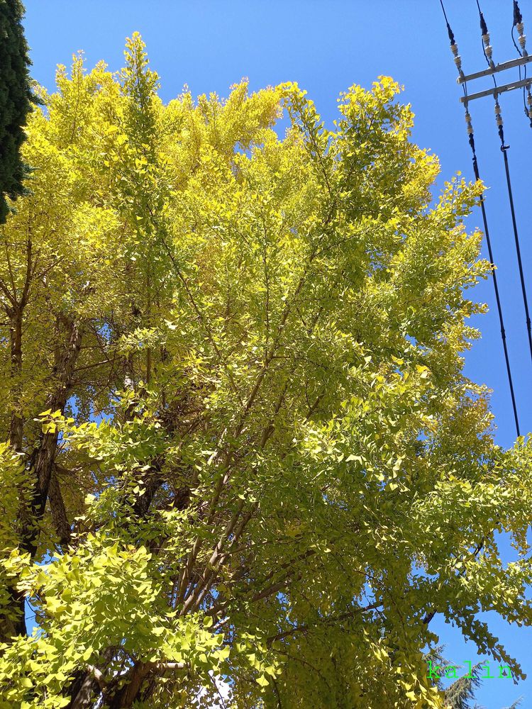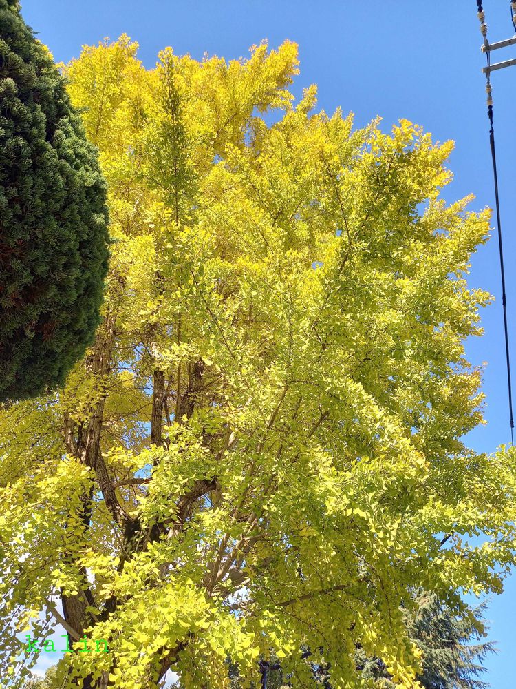 公園の銀杏が黄色くなりました。街路樹も色づいています。