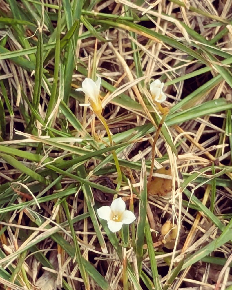 芝生こ中に可愛い1センチにみたない白いお花です。