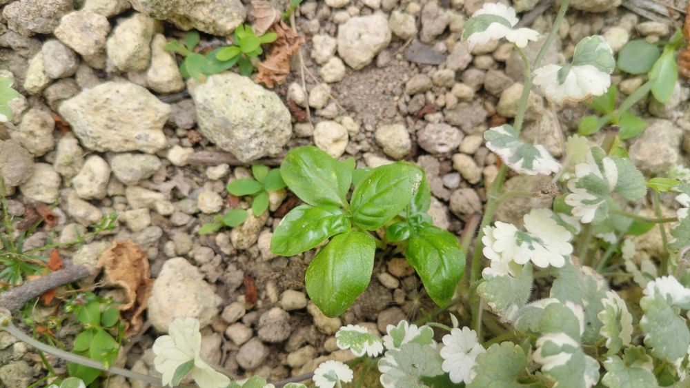 プランターからこぼれ種?で増えた庭の野良バジルです🌿成長写真前半です