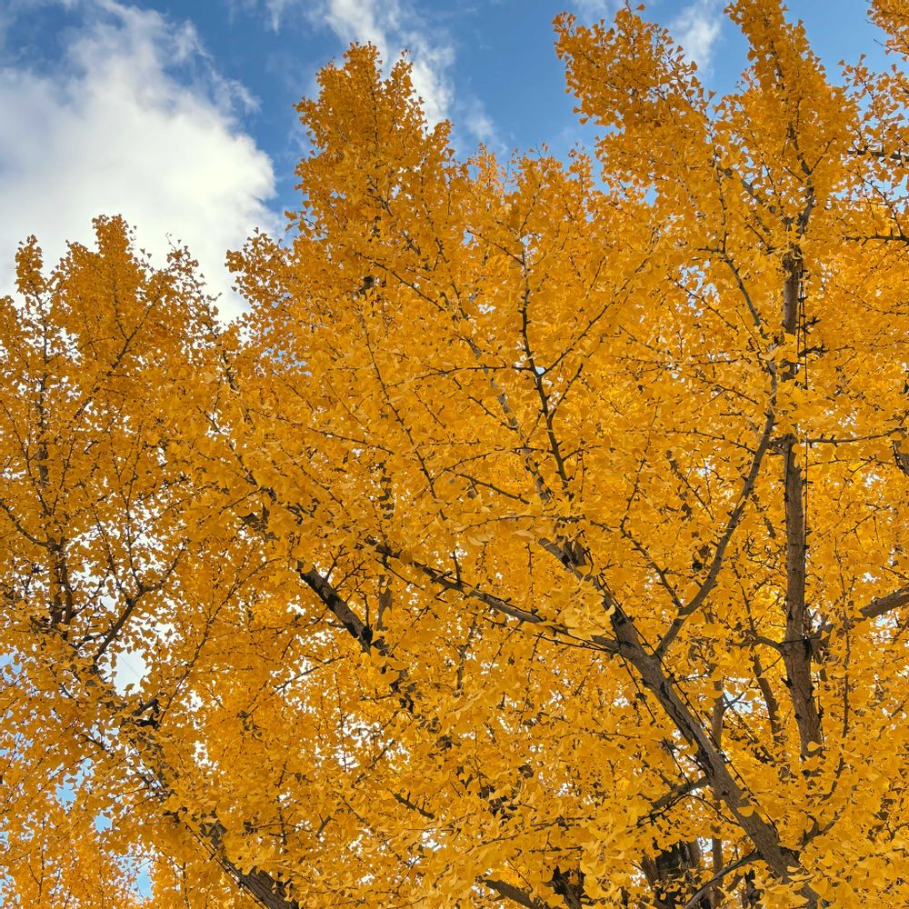 モミジ狩り、赤いモミジも美しいけど、黄金色のイチョウも美しいよね。地域の公園のイチョウです。