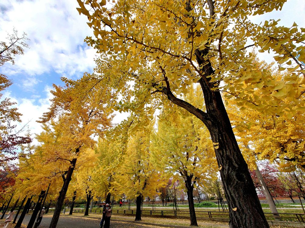 モミジ狩り、赤いモミジも美しいけど、黄金色のイチョウも美しいよね。地域の公園のイチョウです。