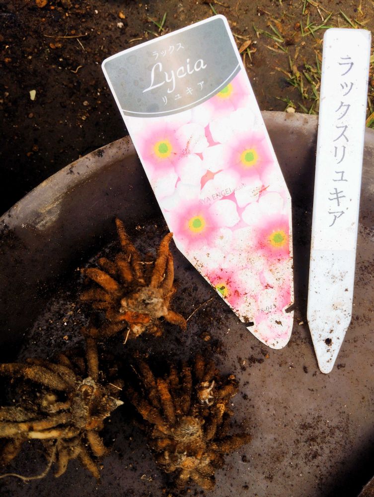❷ラックスリュキアは夏に掘り上げてて植えるのを忘れてたので急いで球根をポットに植え付けしました