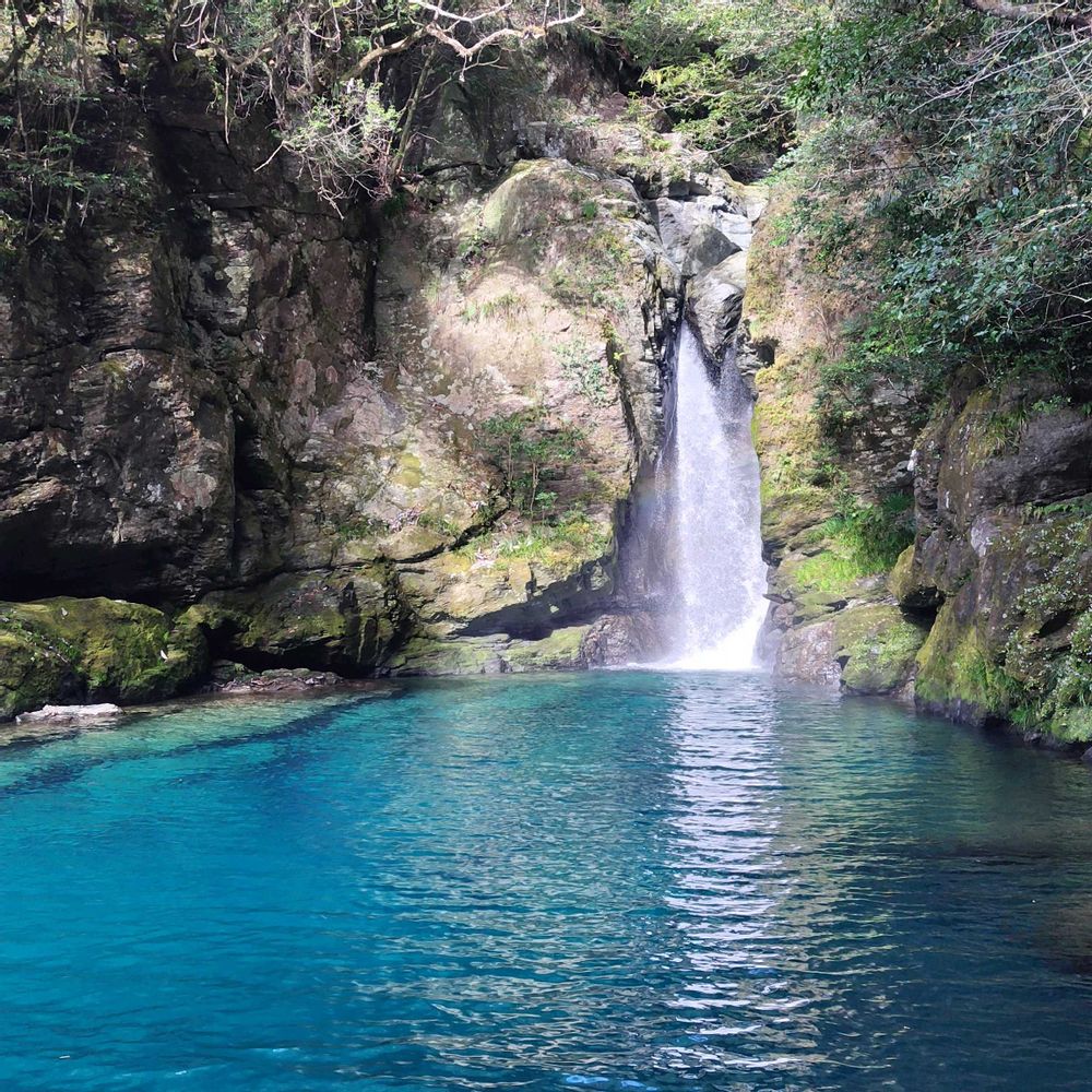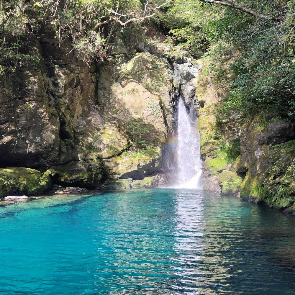 にこ淵は とっても綺麗なブルー💙で神秘的でした😍滝には虹が架かってたよ🌈