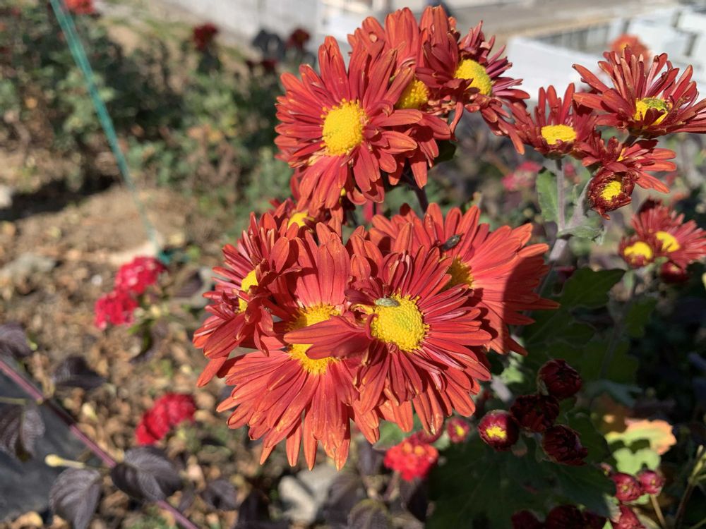 今日の私のグリーンガーデンの花々は小菊とオキザリスです。