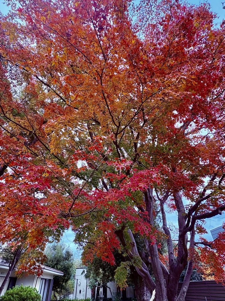 移動中に、ミニ公園に植樹されたもみじの葉が目に止まりました。鮮やかな色に色づき、紅葉🍁 』していました。😊