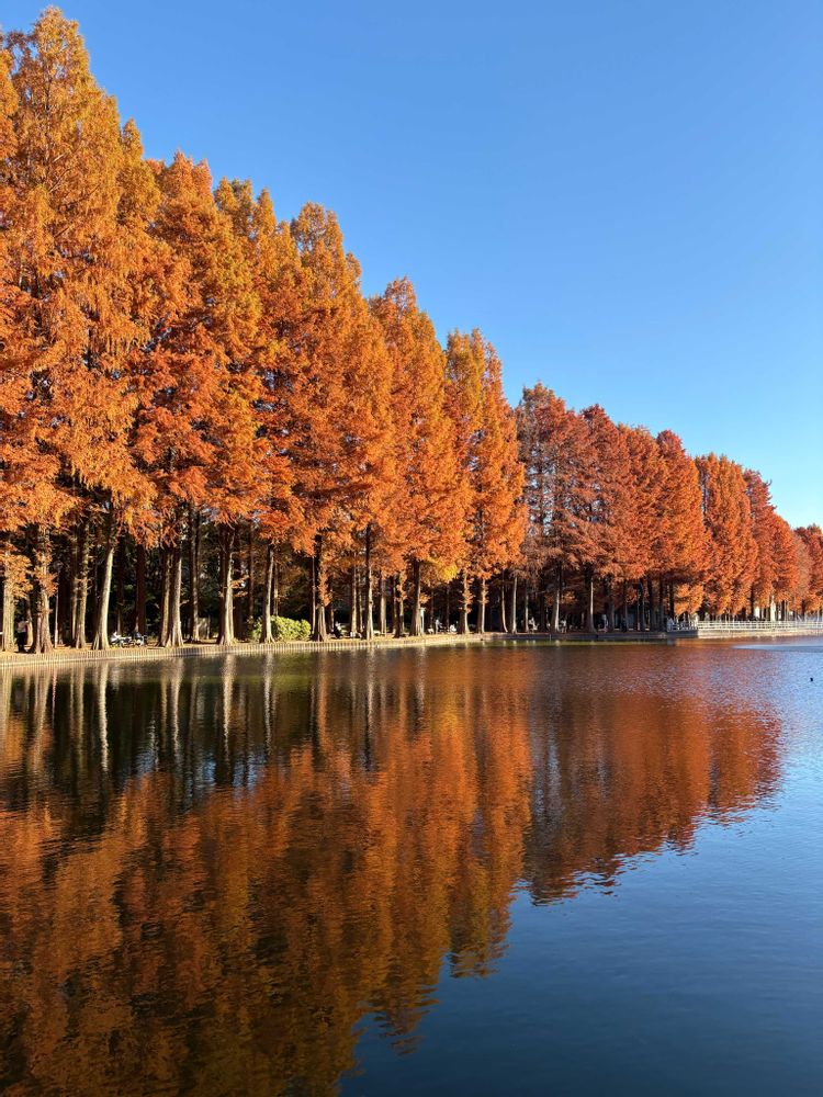メタセコイア並木とリフレクションが綺麗ですね😃撮影に行きたいくらい📸