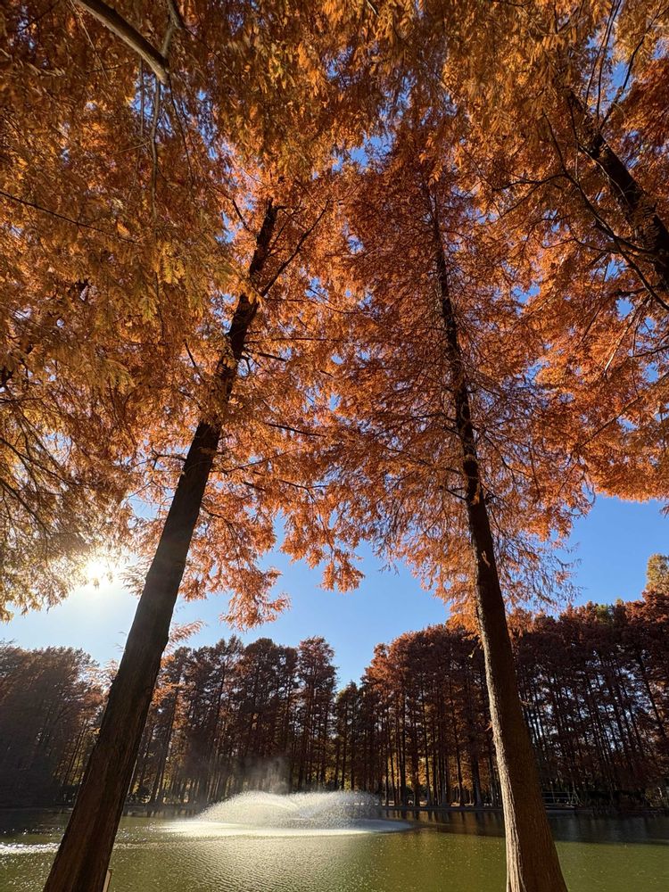 ここまでメタセコイアが赤いのは、初めてかも✨