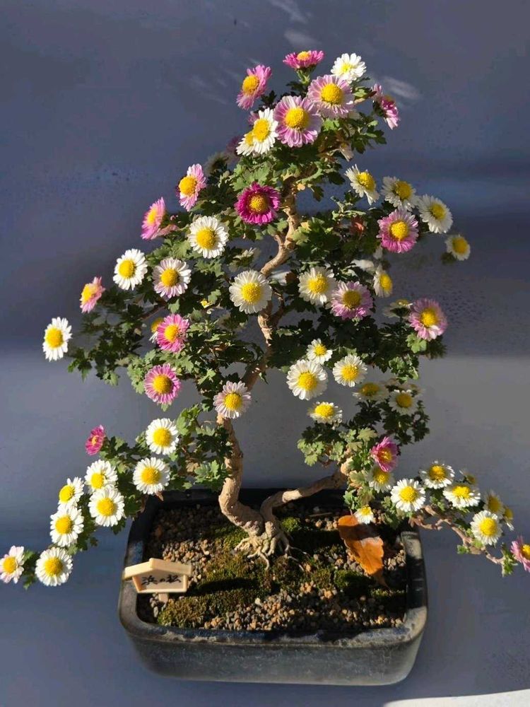樹木盆栽では無く小菊を盆栽仕立てにした作品の素晴らしさです😃