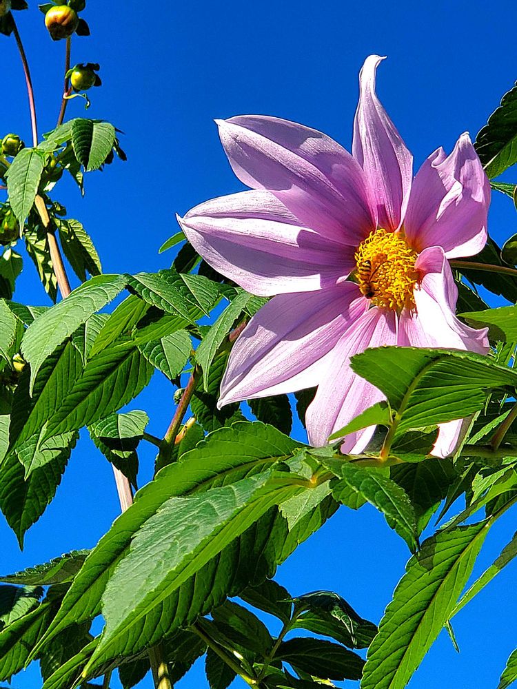 綺麗な🩵に映える皇帝ダリアさん素敵です😊✋