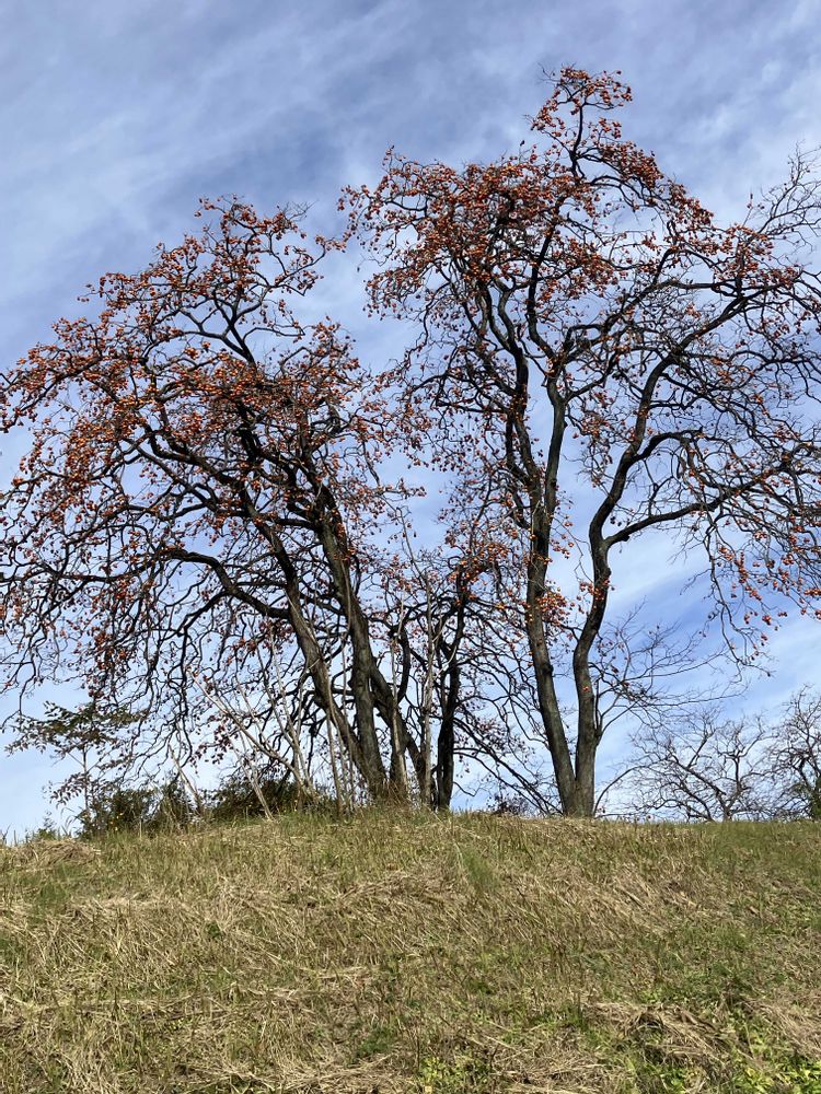 実をつけた柿の木。実を沢山つけた年はHot Spotとして人気場所