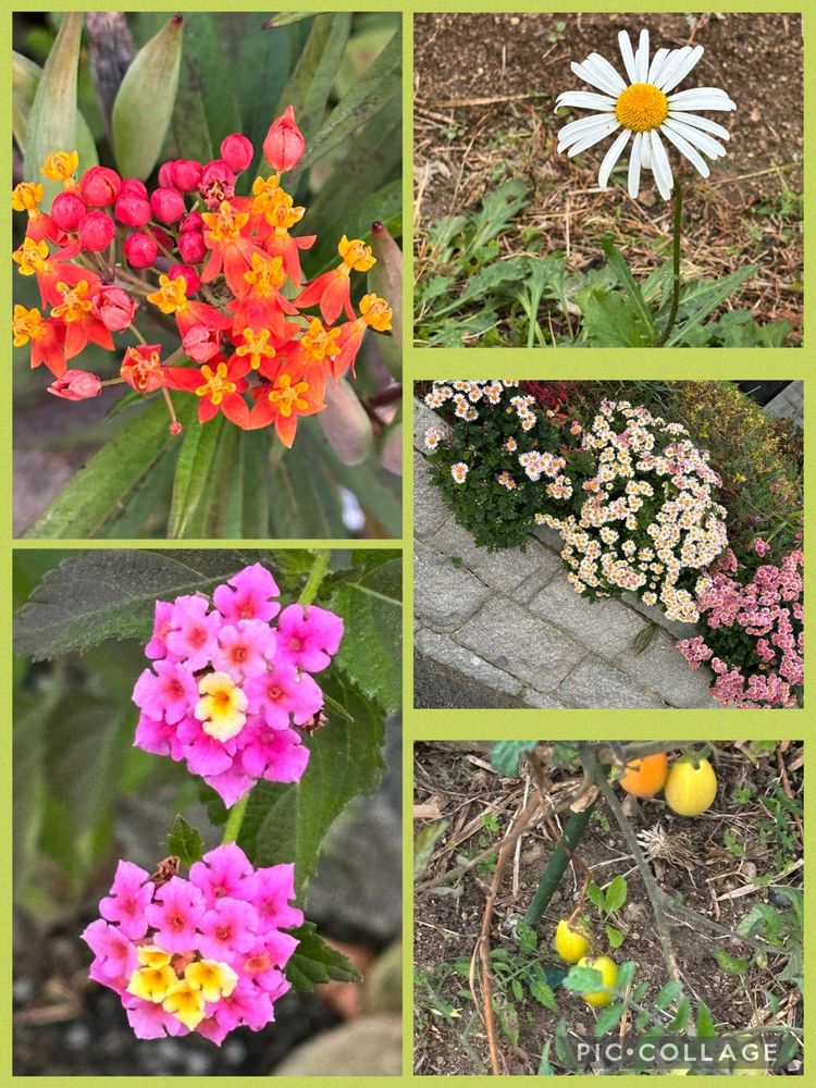 夏からのお花もまだ咲いていたり、プチトマト💛🧡もまだなっていました。