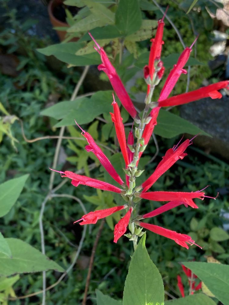 花数の寂しい時期に、パッと目を惹くパイナップルセージ、香りも楽しめるので、気に入ってます🥰