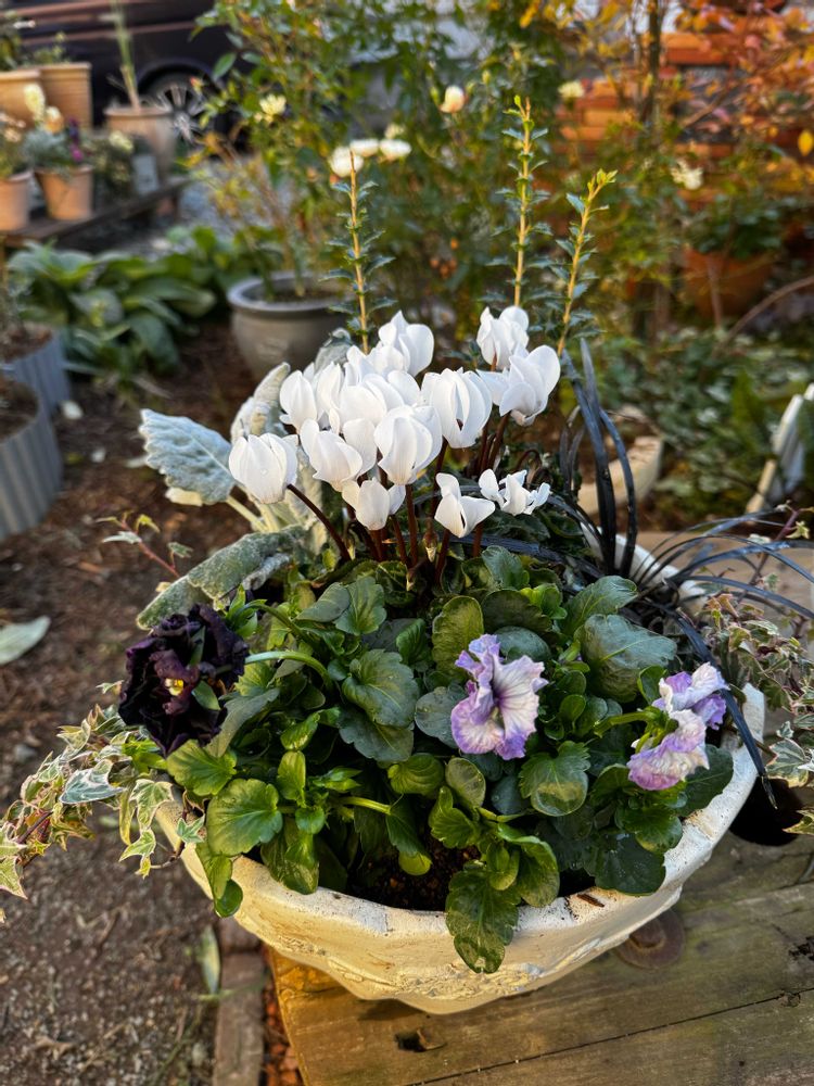 フェデネージュとガーデンシクラメンの寄せ植え🤍🖤
