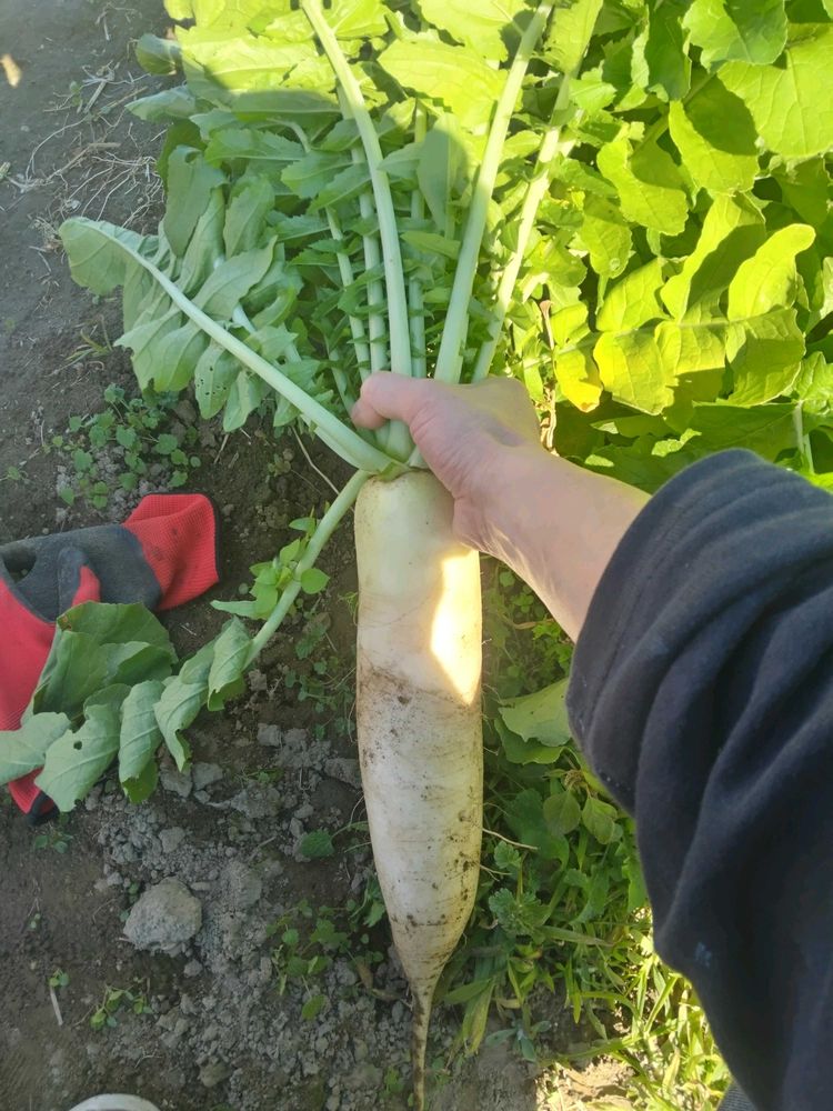 前の投稿より、幾らか大きくなりましたが、ボチボチ収穫しないと他の大根が育たないから早目に収穫です✌️