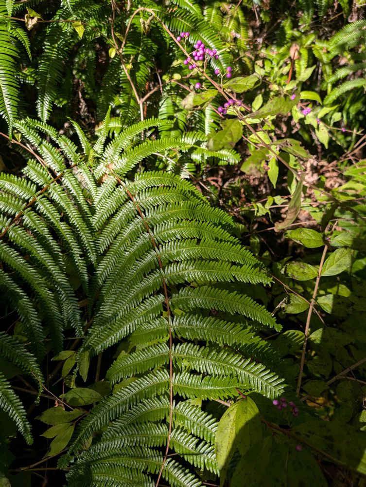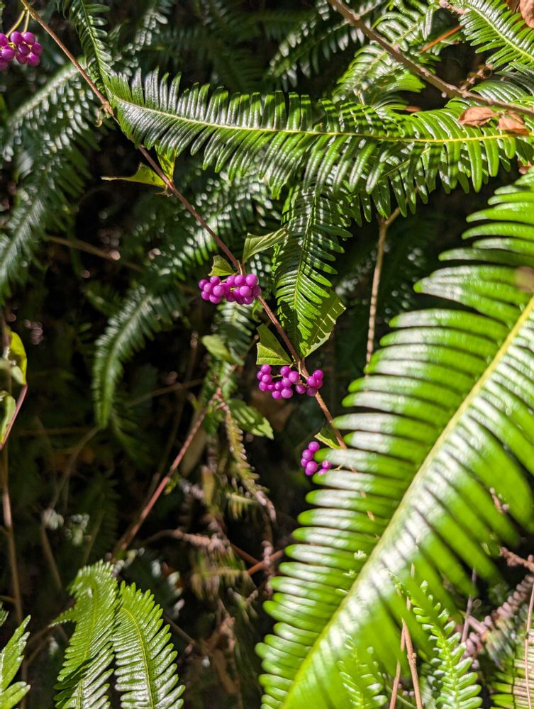 シダ類が多く茂った中に、コムラサキの実を見つけました🧐✨
