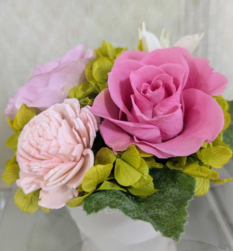5枚目の生花のミニブーケも生花で数年持つ薔薇なんです🥰