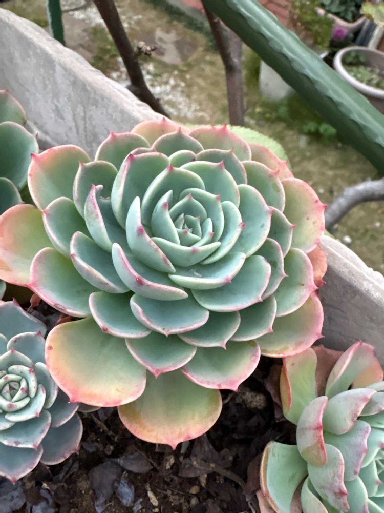 お隣の方に良かったら…と10年ものを頂きました。ムチムチ、つぶつぶ多肉(乙女心、パープルヘイズ…)が好きでついつい増えてしまい、地植え花壇のようなものを作ったりしていますが、こちらのような大きなものは、はじめてです。