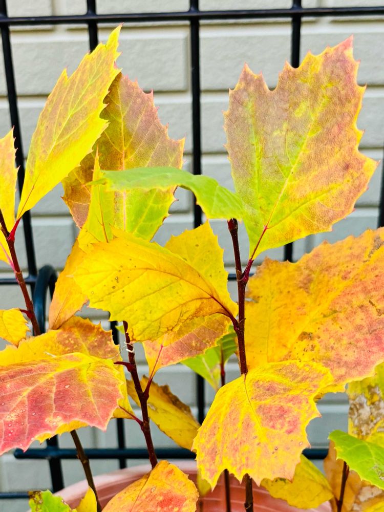 近くの公園🛝で 拾ったモフっとしたでっかい種子を 植えたら 綺麗な紅葉🍁する葉っぱに成長しました