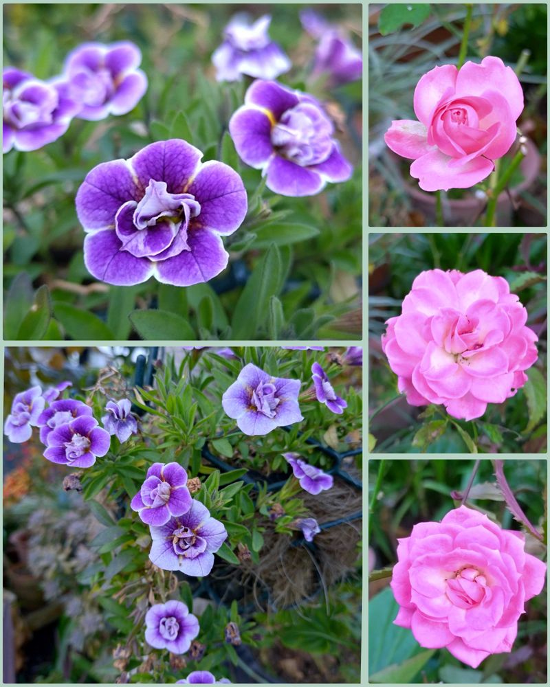 紫のカリブラコアがまた咲いてきました〜🥰🤗🎶🎵バラはミニバラみたいにすごく小さいわ😱