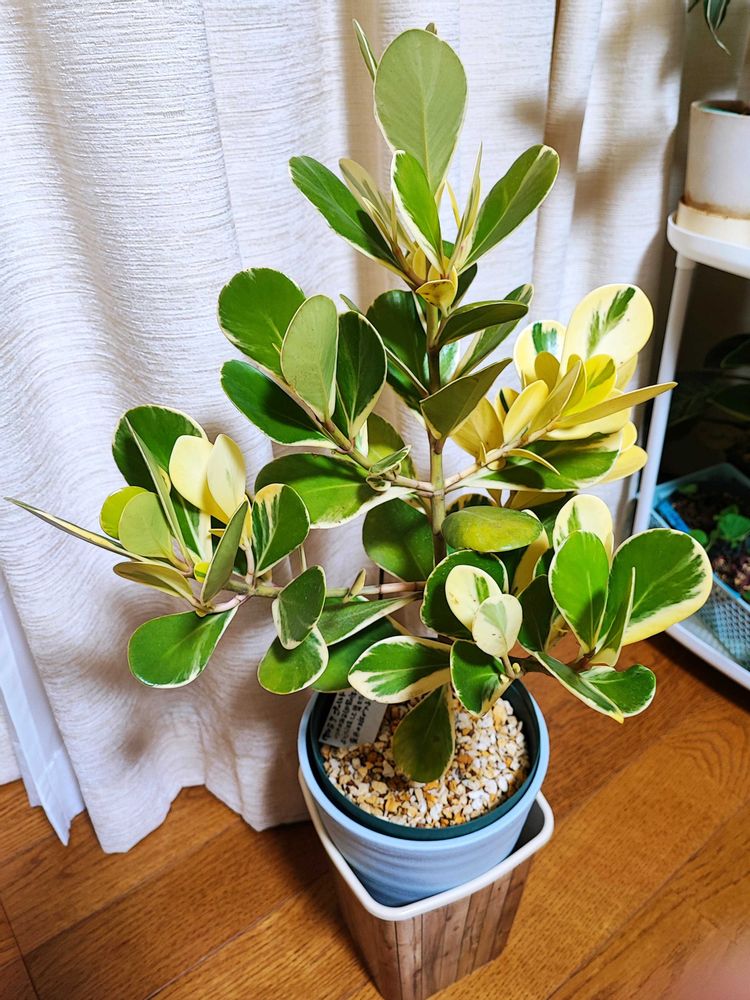 さっきお家に取り込んだ観葉植物のクルシア ゴールドラッシュ。家の中でも外でも超暑くてもある程度寒くても、葉焼けもせず虫にも食われず、ゆっくりですが着実に大きくなってます。