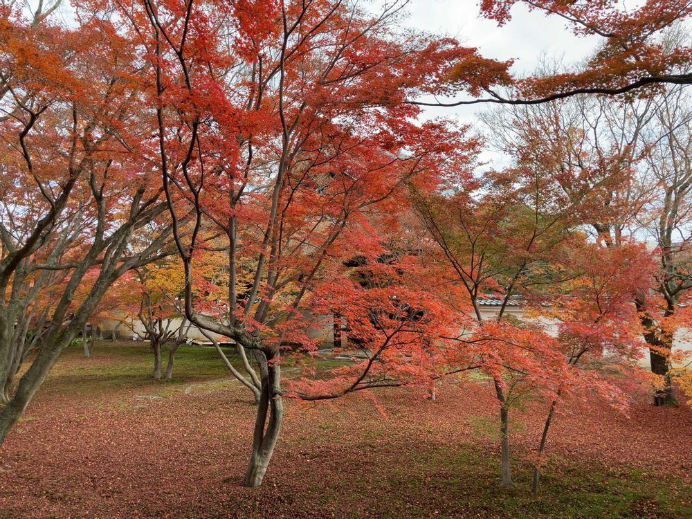 イチョウの黄色の絨毯と真っ赤な紅葉🍁