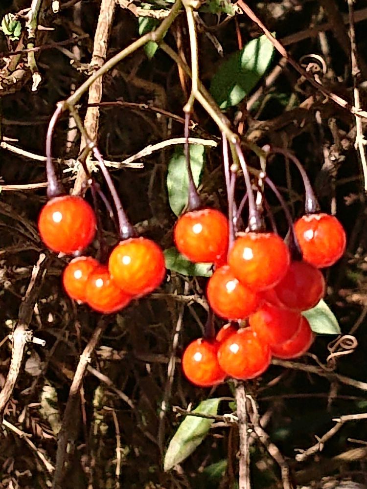 山で、沢山の赤い実を見つけて、興奮。名前はヒヨドリジョーゴでした。