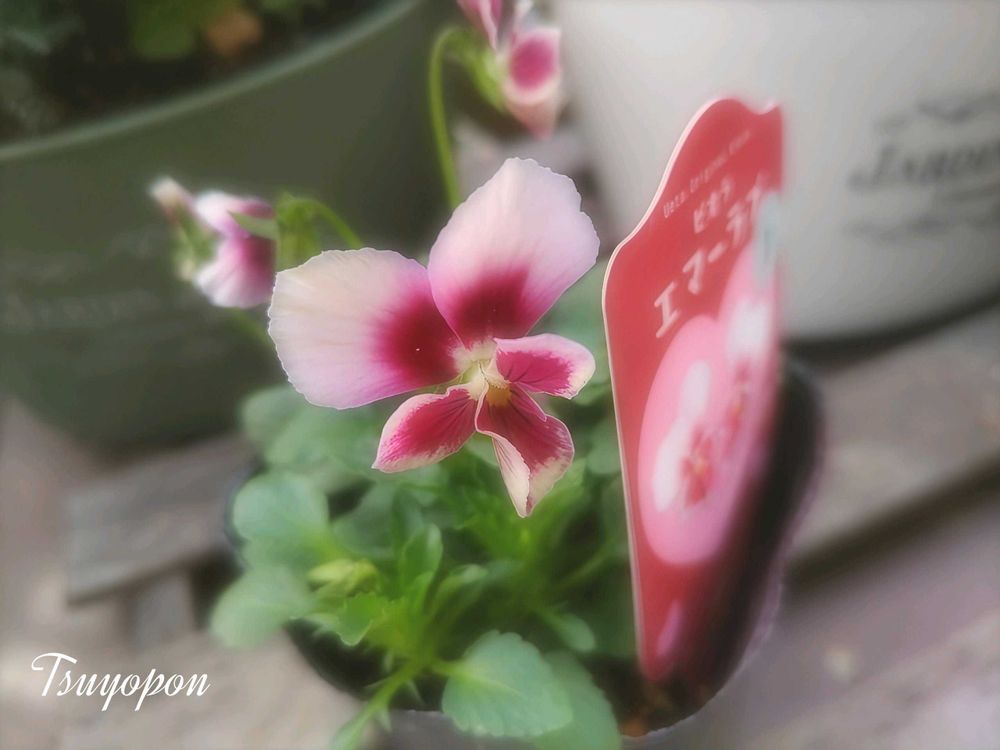 赤❤️と白🤍のビーコンカラーが可愛いうさ耳🐰タイプのビオラ(๑•ᴗ•๑)♡カワイイ♡