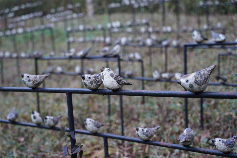 4枚目は陶芸オブジェ。スズメがいいっぱいとまっています。