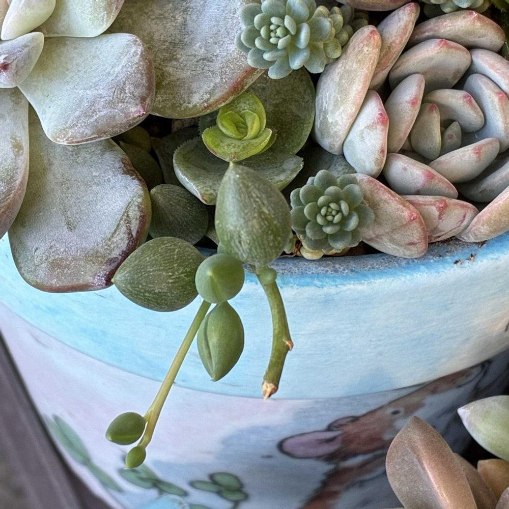 多肉植物の寄せ植えワークショップに参加したら、多肉ちゃんにハマってしまいました。 最近育て始めたばかりの初心者🔰です。2024.2〜 ハンドメイドも大好きで、元々デコパージュ(ペーパーナプキンを使って様々な物に貼り付けて加工する)を教えたりもしていました。