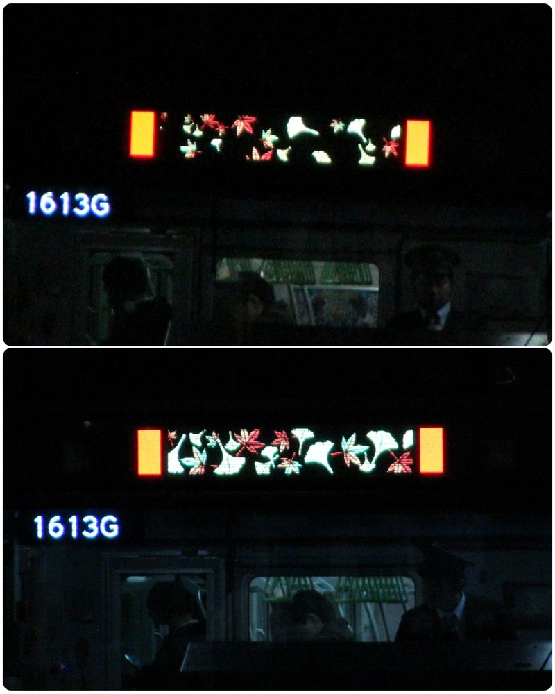 ①遅くなりましが、今月のJR山手線のお尻表示は、紅葉(こうよう)🍁でした。