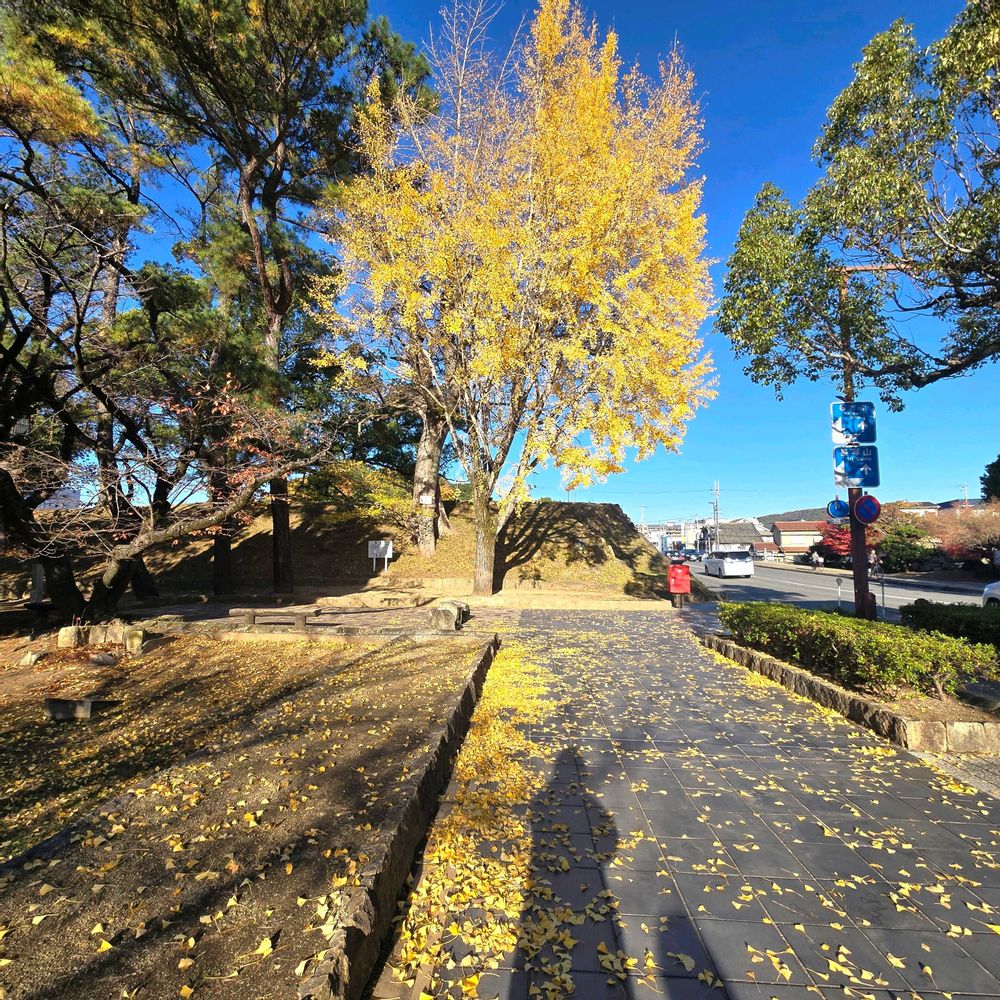 銀杏の絨毯、紅葉の水鏡、フミピーさんのシルエット、白亜の天守閣、みんな素敵ですね🤩😅🍁😍
