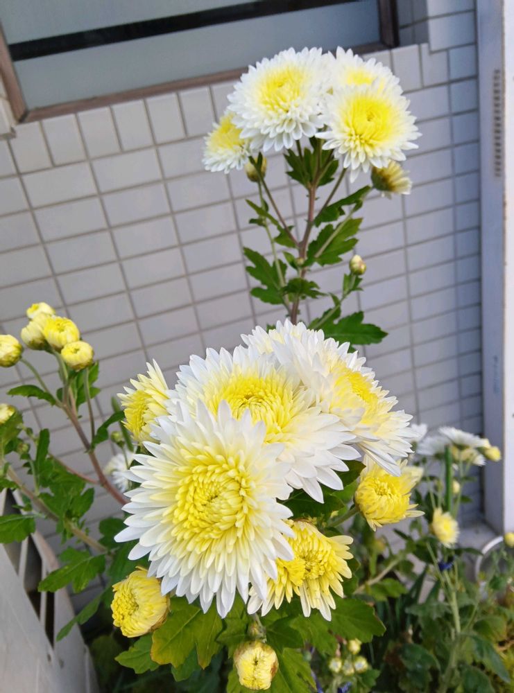 真っ白い菊💮💚💮&美しい円座いい感じ~~~