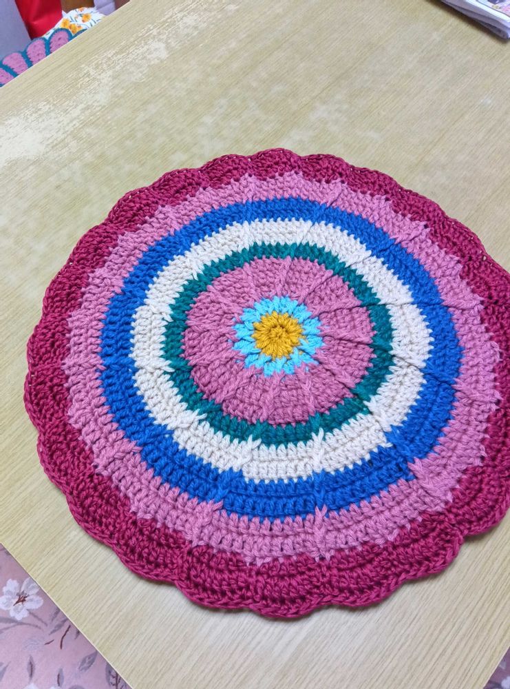 円座は残り毛糸で昨晩出来上がつたのですが配色がいまいちです