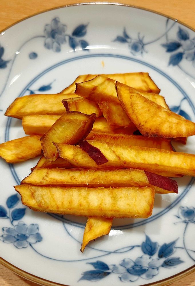 ④さつまいもを使って芋けんぴ作りました🍠大学芋にすると砂糖が入るので太ると思って😆素揚げにしたらこれでも美味しくいただけます🍠