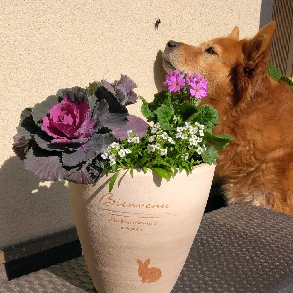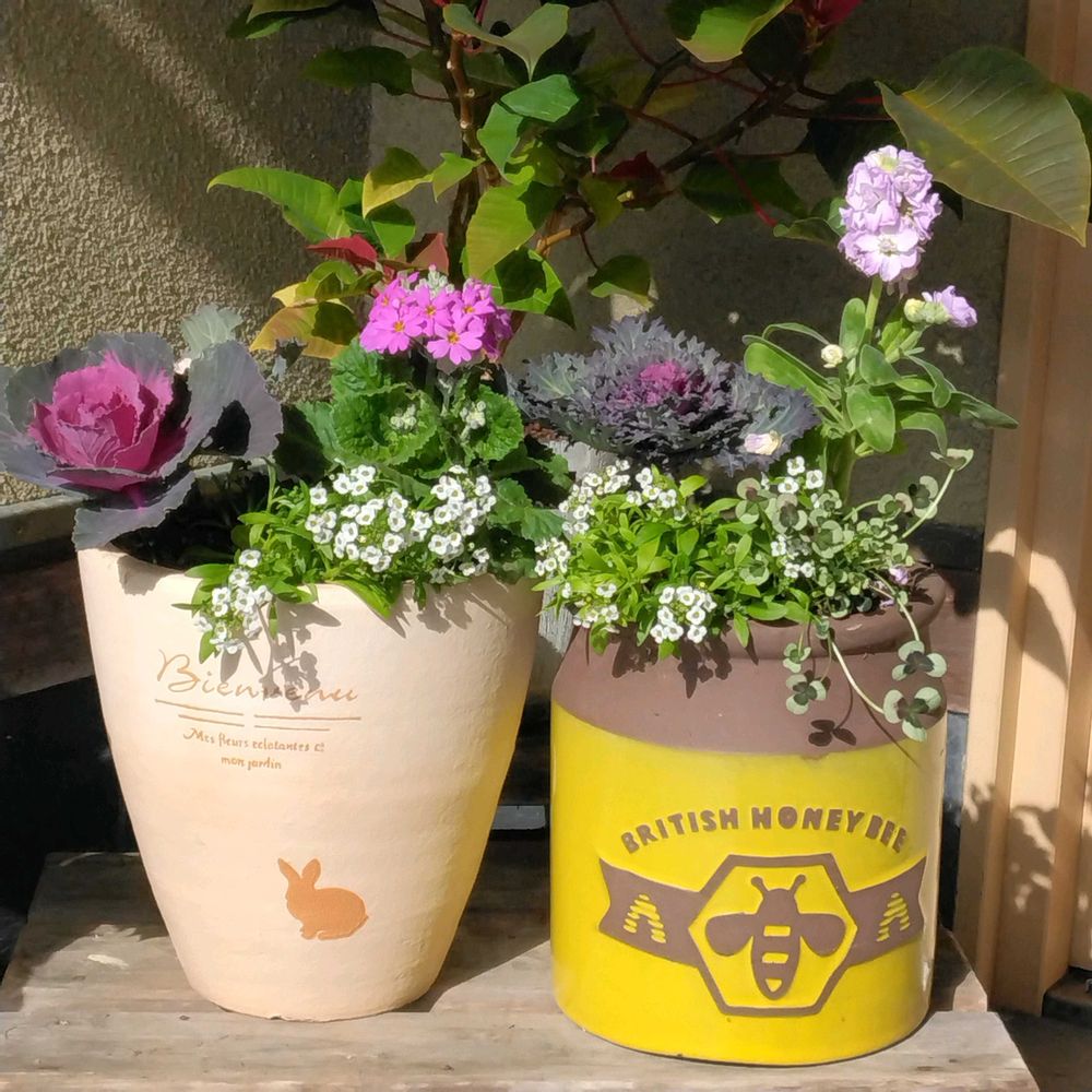 ① この間お花屋さんで見つけた、可愛い鉢に、お正月用として植えたよ😊