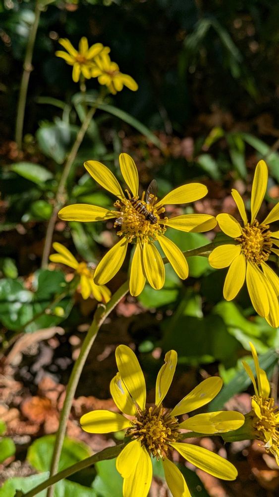 艶のある葉を持つ蕗、ツヤハブキが訛ってツワブキと言う説がある🟢石蕗は冬の季語とのことだが、黄色い花は元気をくれる❄