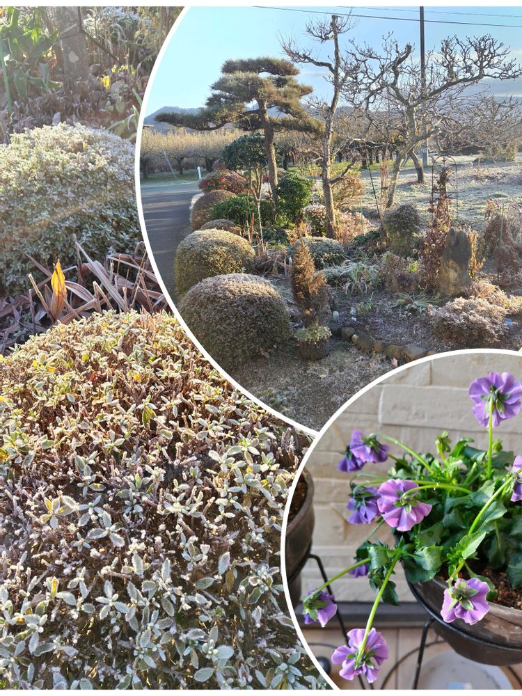 5枚め…一面霜が降りた、今朝の庭の様子🥶💦