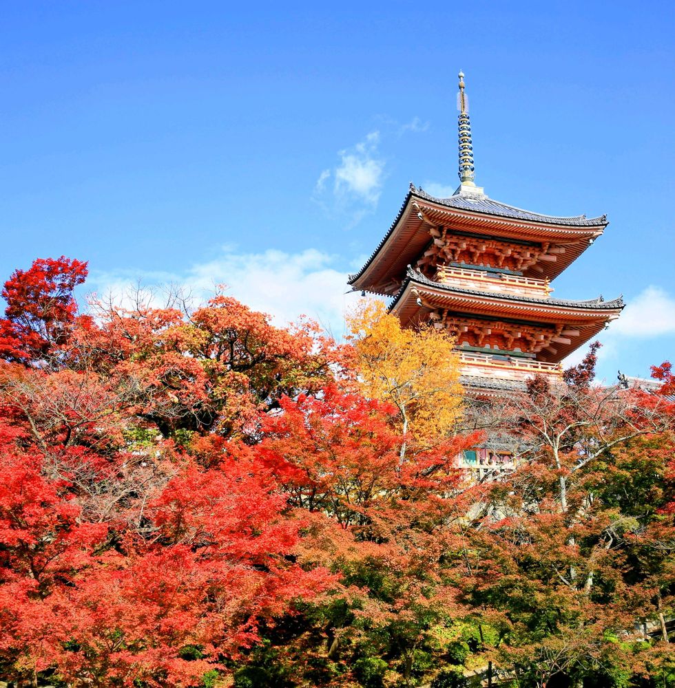 清水寺の紅葉🍁🍁🍁と青い空、美しいです。